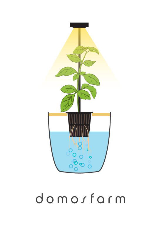 Domosfarm is a single-plant, low-maintenance hydroponic product that helps users grow edible herbs and plants at home with ease without the worry of killing them. This project originated from the desire of having fresh greens at home while making their care as easy as possible. The solution was a passive hydroponic system using the Kratky method that offers a fast-growing rate for plants as well as the lowest burden for the take carer.