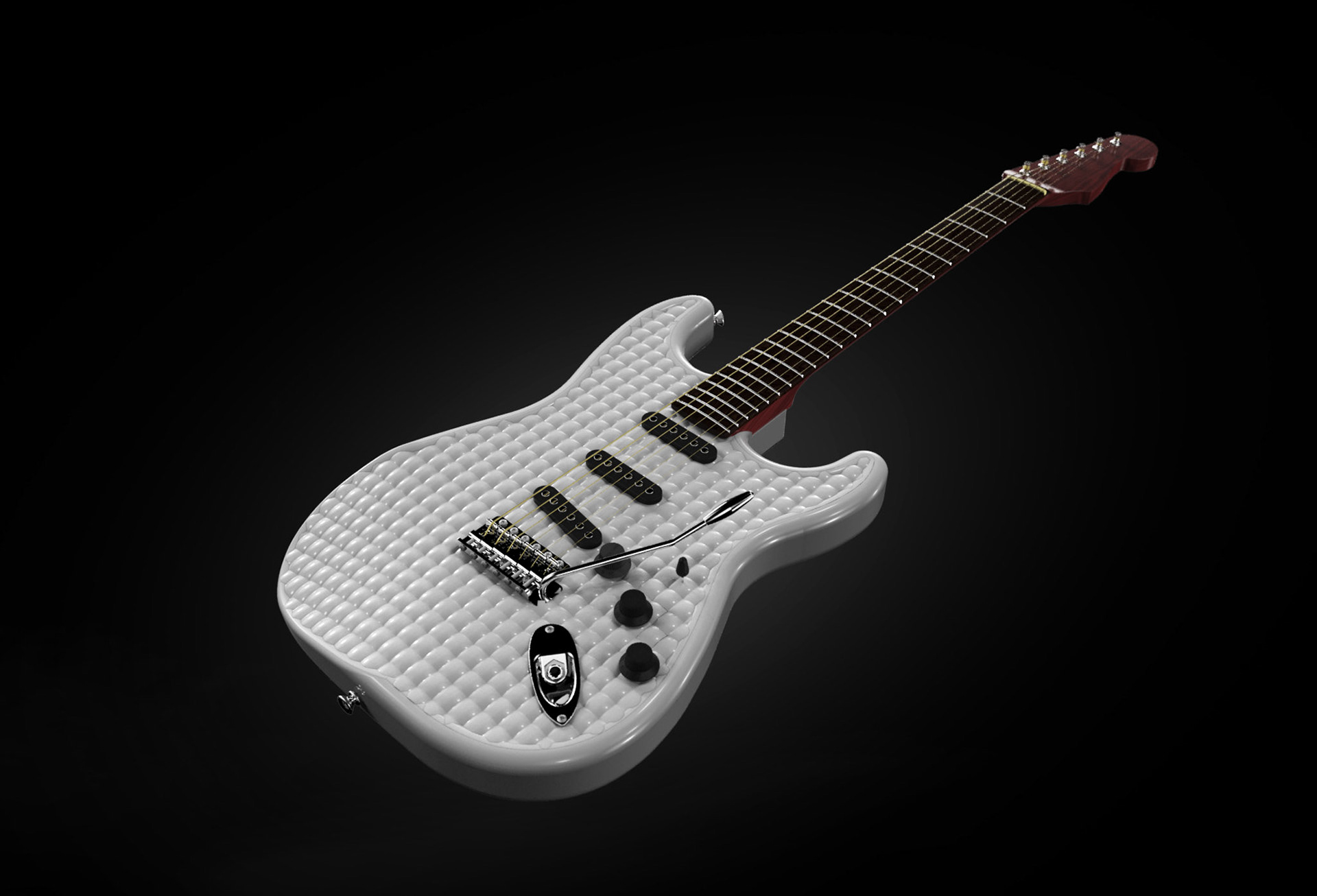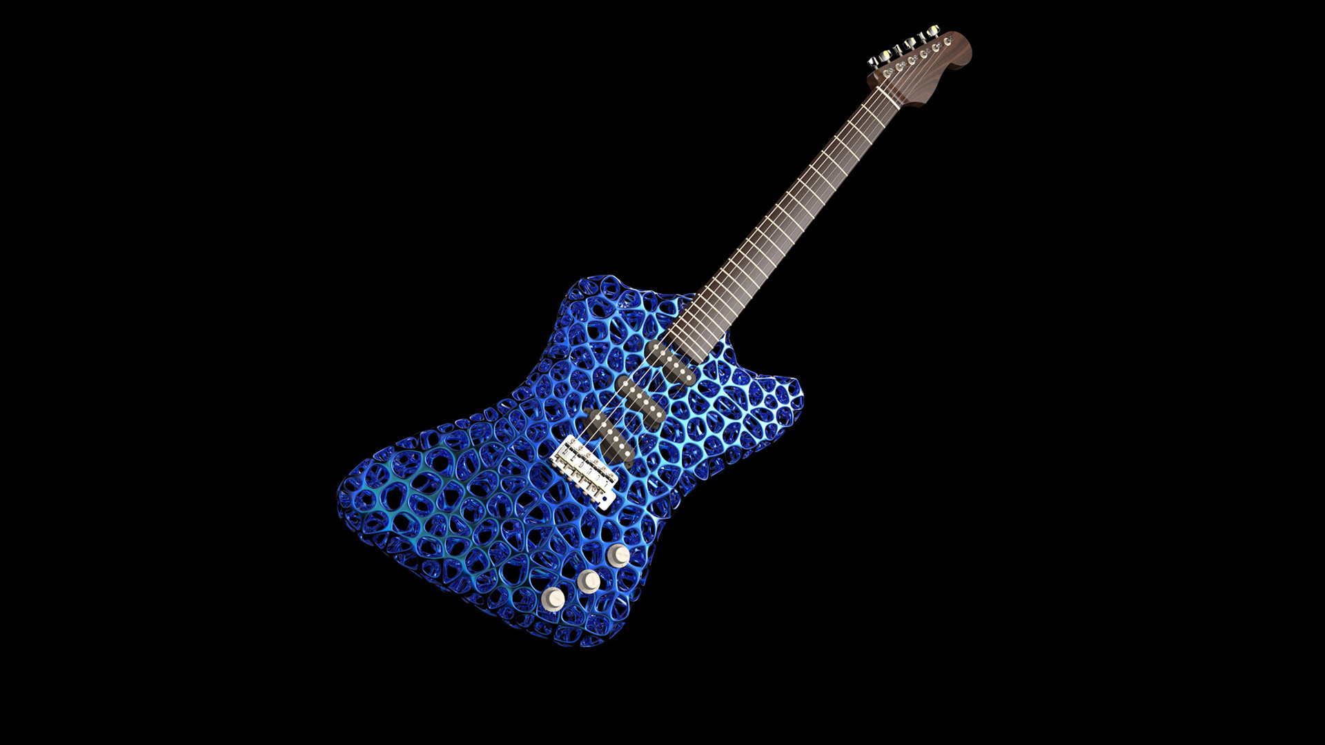 Organic form experimentation for guitar bodies enabled by parametric modeling software.